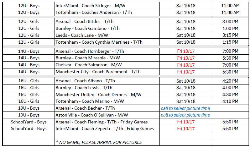 Picture Day - OCTOBER 17-18 / MAKE UP Saturday Oct 25